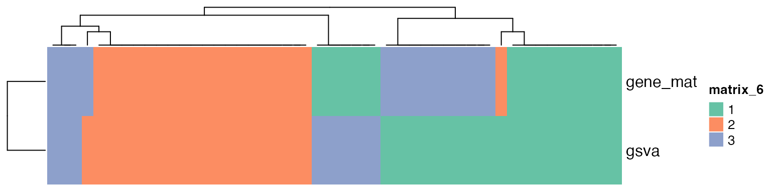 Heatmap(rbind(gsva = cl1, gene_mat = cl2), col = cola:::brewer_pal_set2_col[1:3])