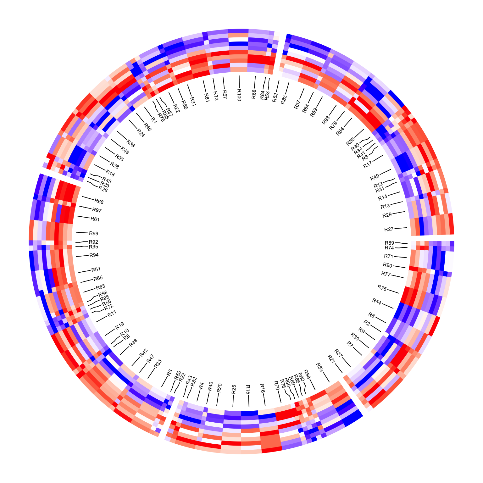 circos.heatmap(mat2, col = col_fun2)