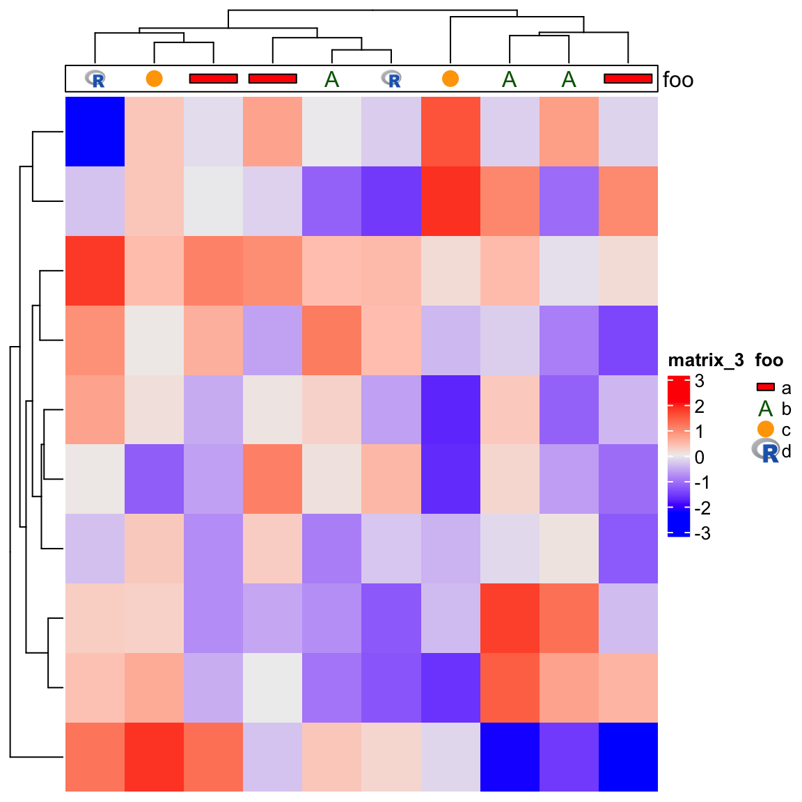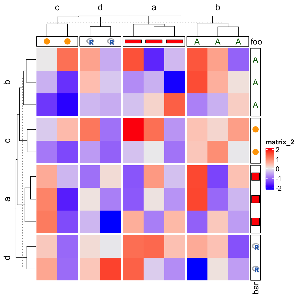 Then we add this new annotation to both row and column of the heatmap, just in the same way as normal annotations.