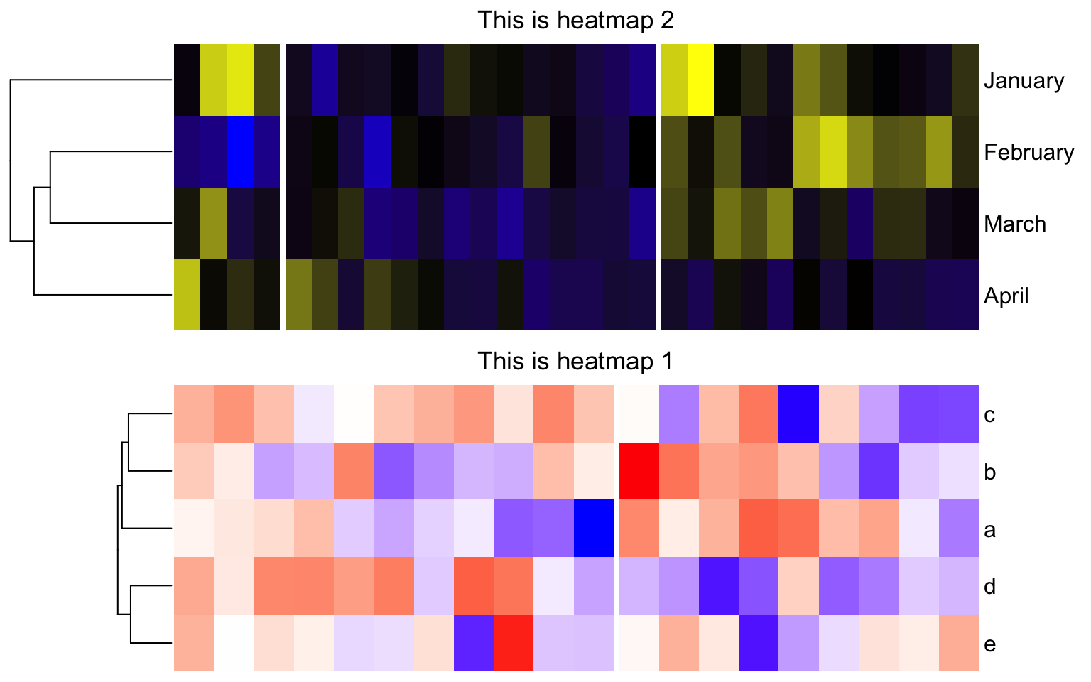 In the last chunk of code, we manually create viewports and put heatmaps in. Note