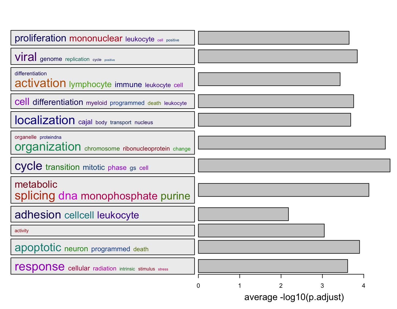 summarizeGO(value = v[l], axis_label = "average -log10(p.adjust)")