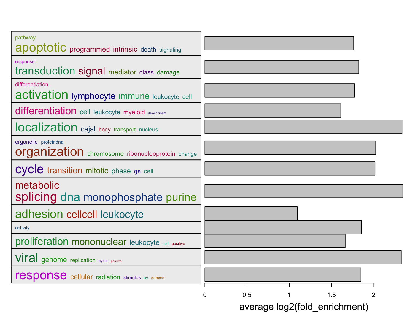 summarizeGO(df$ID[l], log2_fold_enrichment[l], axis_label = "average log2(fold_enrichment)")